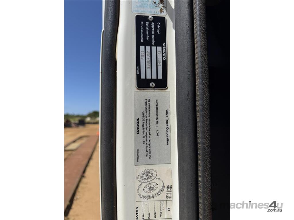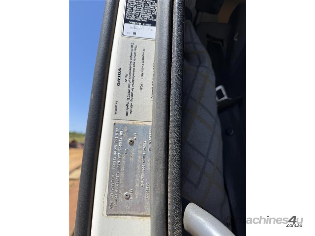 CP: 06/2006,Volvo,FH Series,Prime Mover,Automatic,Engine #: D13015002,Volvo D13A,797384 (Kms. Showing on Odometer),Hourmeter not visible,Colour: White,Rego. No: NP(1ISS364), Unregistered WA,VIN: YV5AS50D66D128235,GVM: 27700,GCM: 120000,Sold with No Plates