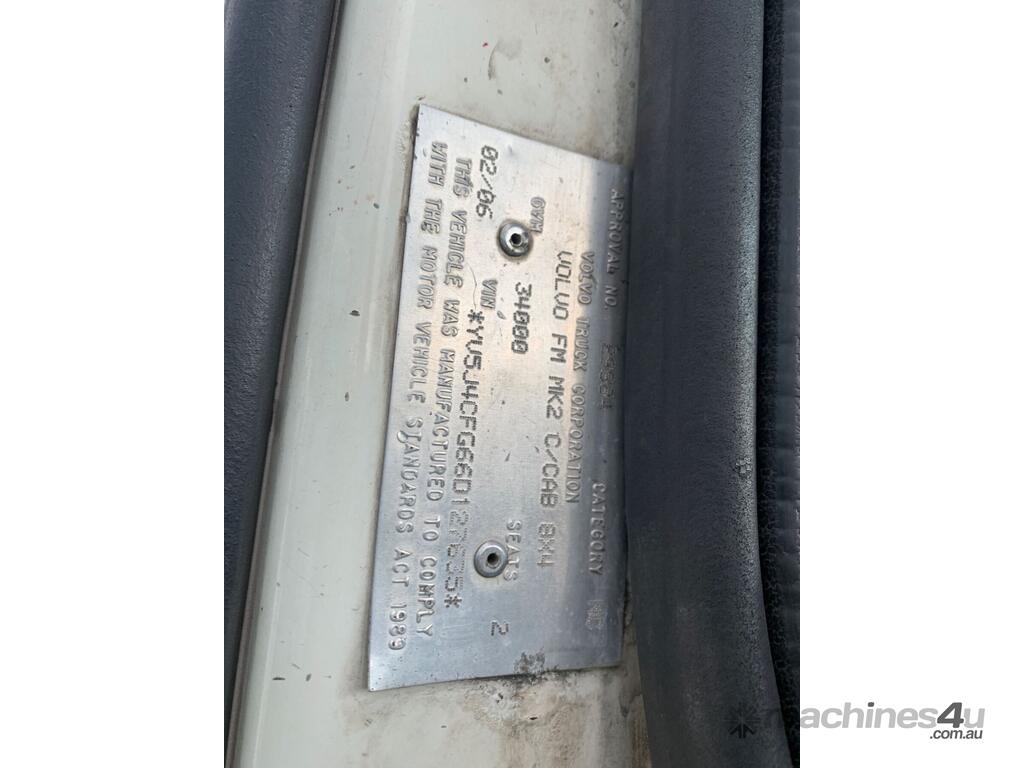 CP: 02/2006,Volvo,FM 12,Cab Chassis,Manual,spring,6 Cyl,Diesel,244952 (Kms. Showing on Odometer),Hourmeter not visible,Colour: White,Unregistered,VIN: YV5J4CFG66D127635,GVM: 34000,Sold with No Plates,WOVR Status: WOVR N/A,Incident Type: Malicious,Impact