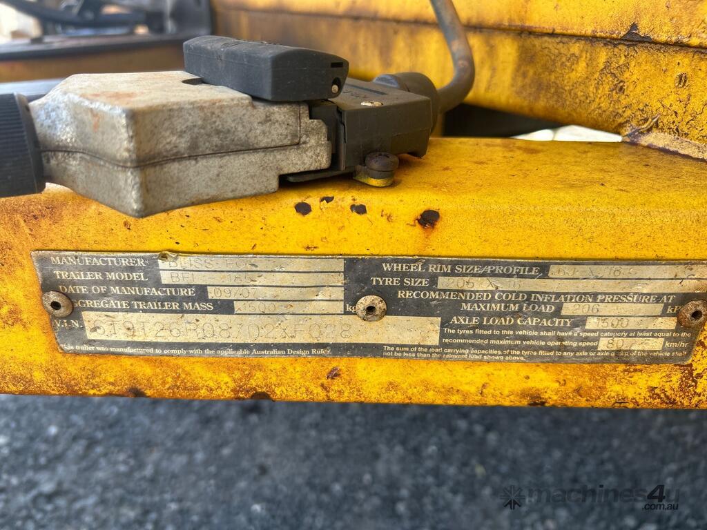 CP: 09/2007,Bliss Fox,Single Axle Light Tower Trailer,Hubometer not visible,Colour: Yellow,Unregistered,VIN: 6T9T26R08702XF028,Sold with No Plates