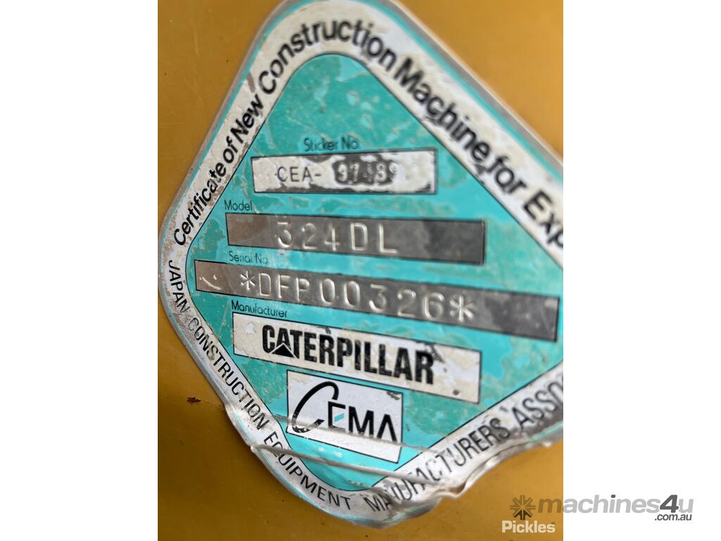 CP: CIRCA 2007,Caterpillar,324DL,Excavator (Steel Tracked),6 Cyl,Diesel Turbo,Odometer not visible,20362 (Hrs. Showing on Hour meter),Colour: Yellow,Unregistered,Serial No: DFP00326,Sold with No Plates