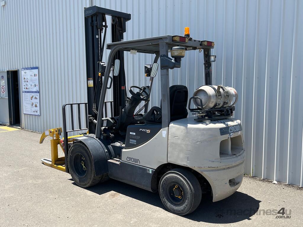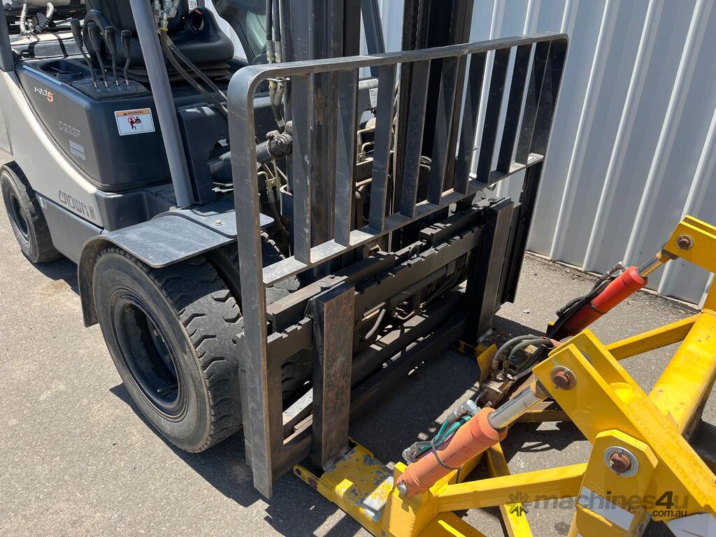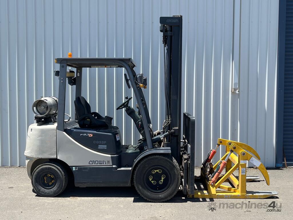 CP: CIRCA 2007,Crown,CG33P-5,Forklift,4 Cyl,LPG only,Odometer not visible,2084 (Hrs. Showing on Hour meter),Colour: Grey,Unregistered,Serial No: MT00192R,Sold with No Plates