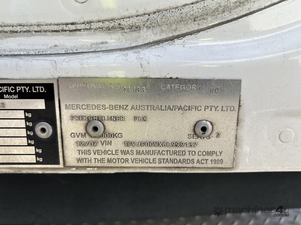 CP: 12/2007,Freightliner,Columbia CL112,Prime Mover Day Cab,Automatic,Airbag Suspension,Mercedes OM460 LA CID 781,6 Cyl,Diesel,204148 (Kms. Showing on Odometer),Hourmeter not visible,Unregistered,VIN: 1FVJF0CVX8L999137,Key No: Onsite,GVM: 24000,GCM: 50000,Sold with No Plates,Key No: Onsite