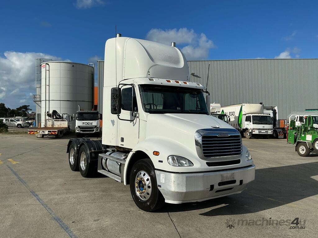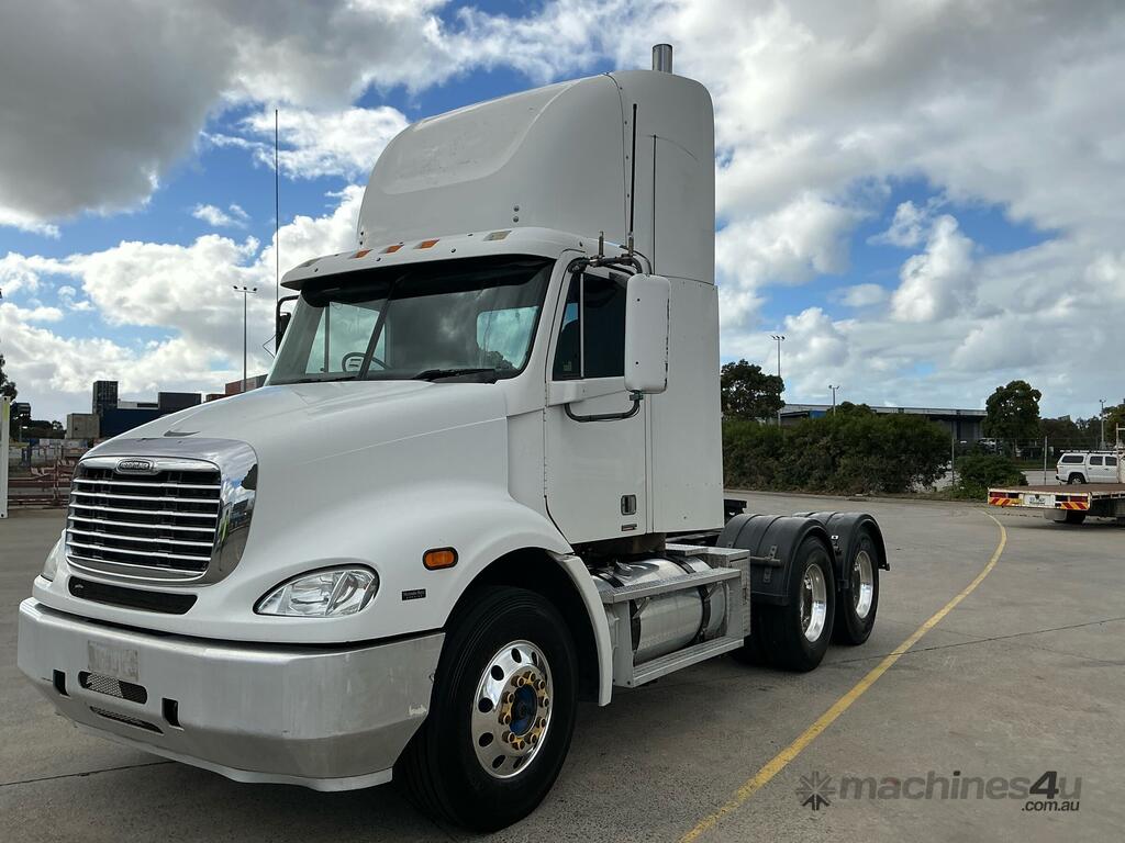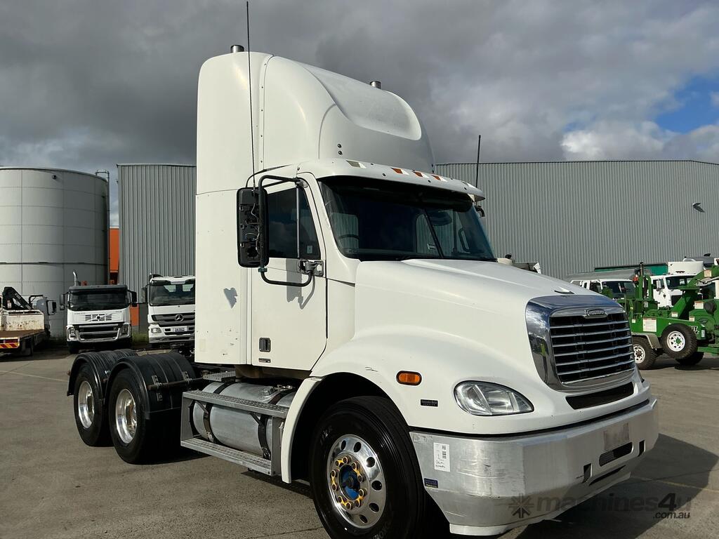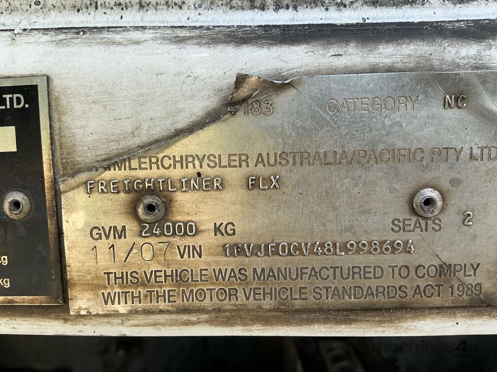 CP: 11/2007,Freightliner,Columbia CL112,Prime Mover,Automated Manual Transmission,Air Bag Suspension,Engine #: ,Mercedes Benz MBE4000,6 Cyl,Diesel,1581634 (Kms. Showing on Odometer),32701 (Hrs. Showing on Hour meter),Colour: White,Unregistered,VIN: 1FVJF0CV48L998694,Key No: 1,GVM: 24000,GCM: 50000,Sold with No Plates,Key No: 1