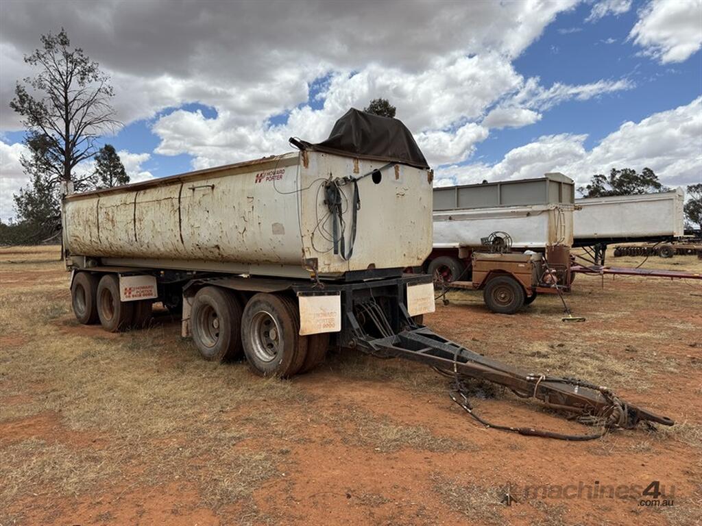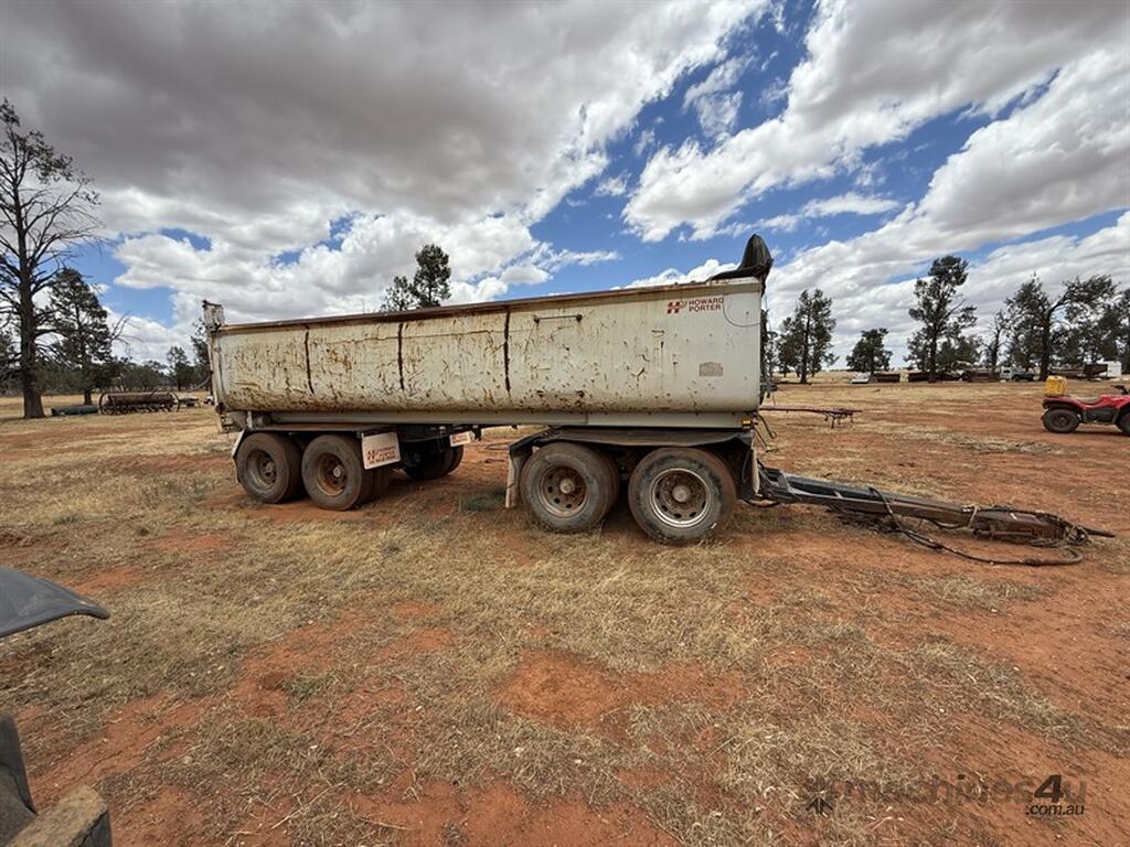 2007 Howard Porter Steel Quad Dog, VIN: 6T9T24WA170BKN002, K Hitch axles on spring suspension, 10 stud steel Euro rims, 2-way tail gate, 3m pull, dolly lock, tarp needs repairs, bows are in tarp. Measurements: length7.22m, width 2.5m, height 1.2m. Located Lake Cargelligo NSW.