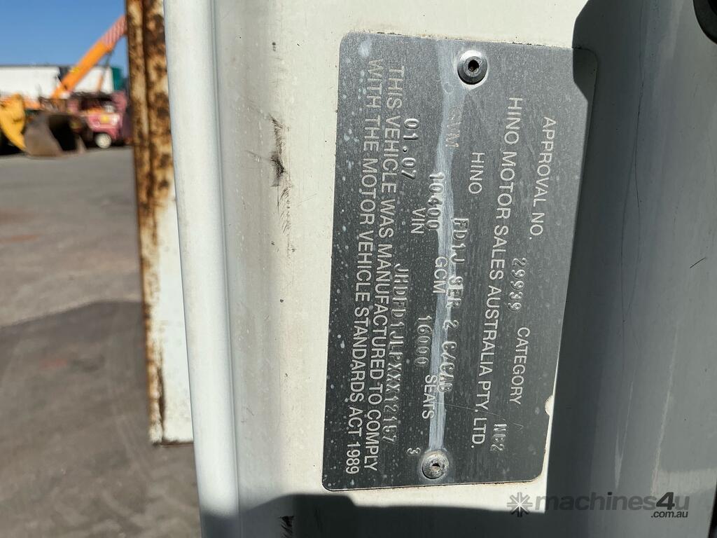 CP: 01/2007,Hino,FD1J Series 2,Curtain Sider,Manual,leaf Spring Suspension ,Engine #: J08CUJ14480,6 Cyl,Diesel Turbo,6 Gears,565605 (Kms. Showing on Odometer),Hourmeter not visible,Colour: White,Rego. No: 1GEK187 WA,Rego expiry: 03/01/2026,VIN: JHDFD1JLPXXX12157,Key No: 544,GVM: 10400,GCM: 16000,Plates to All,Key No: 544