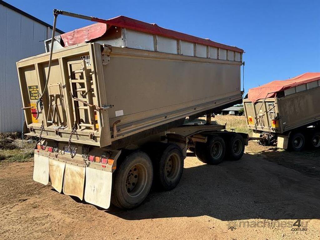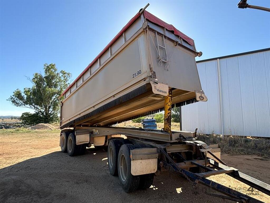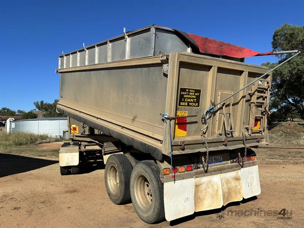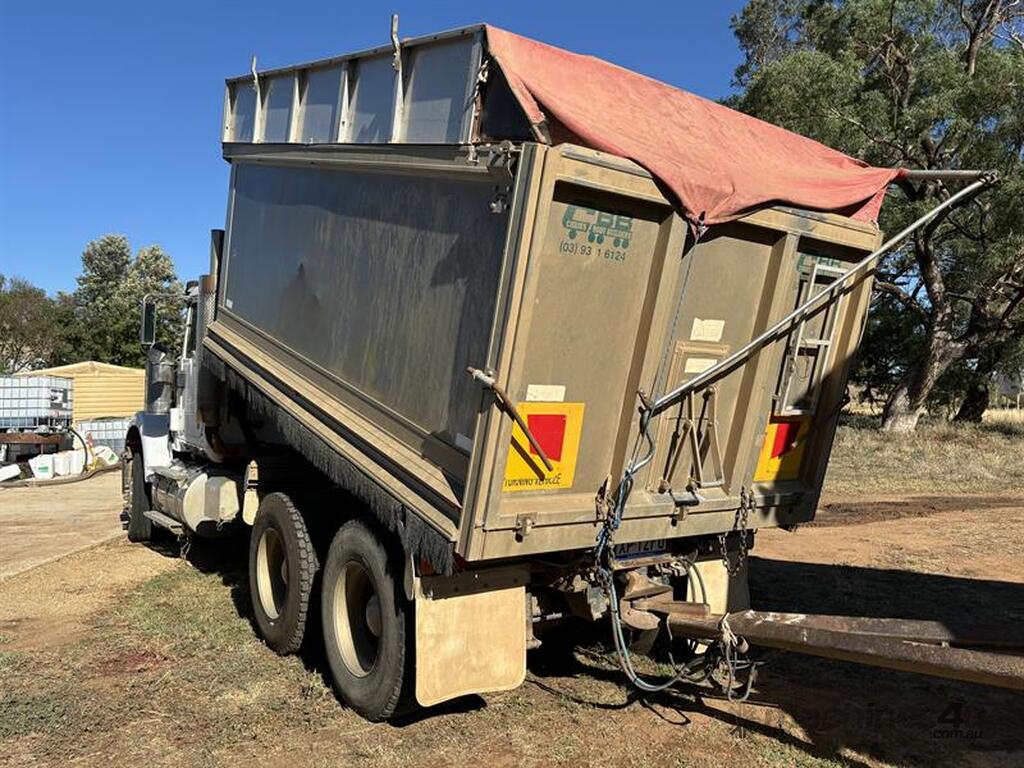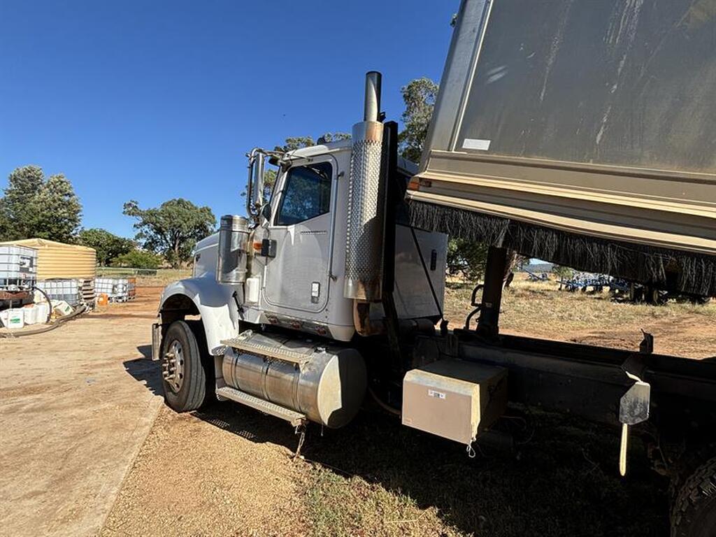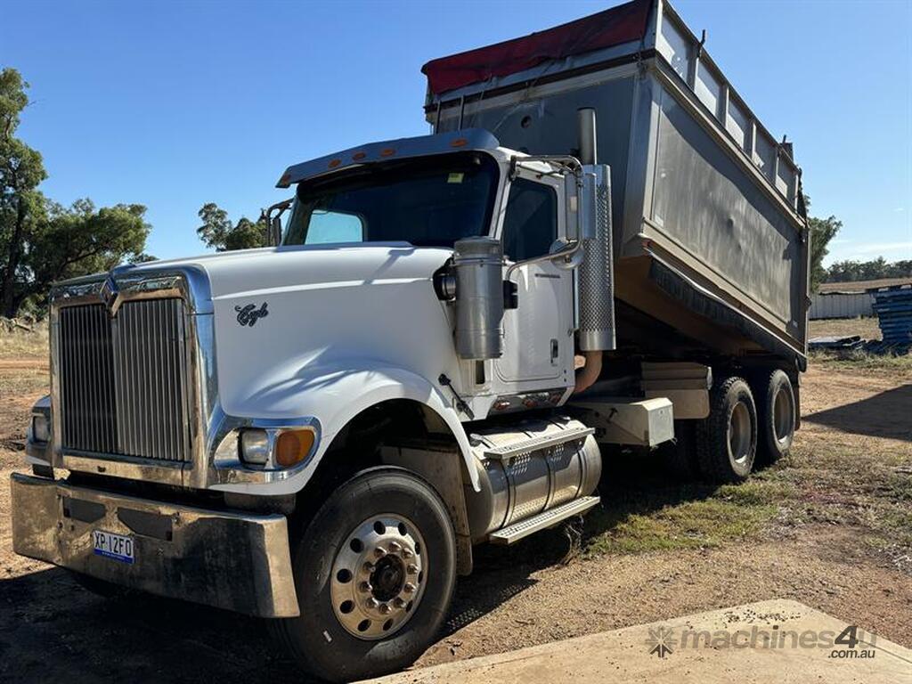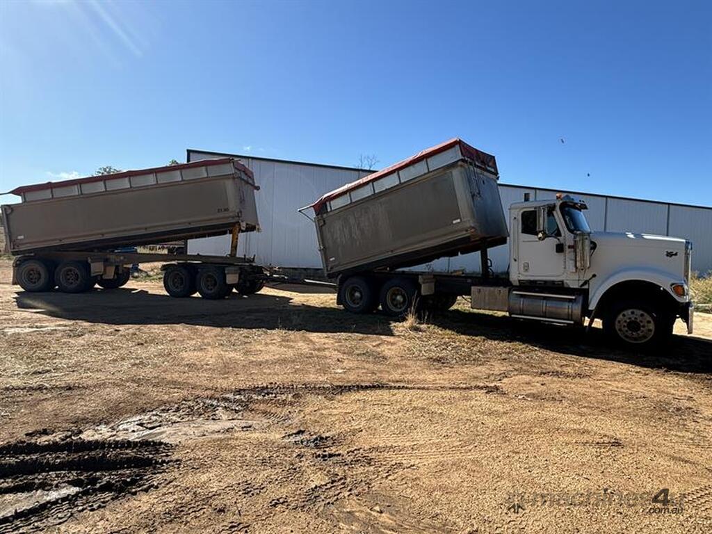 2007 INTERNATIONAL EAGLE 9900i, VIN 6F2L932006DN00453, Gen 2 Cummins, 18 speed Road ranger, Meritor 4.3 diffs with cross locks, CBB tipping body with grain extensions and roll over tarp, paired with Hercules quad dog with Hendrickson axles and suspension, alloy chassis, grain extensions and roll over tarp, airbag suspension right through, truck is 75t rated, good condition, runs well, located Obley, available via MRE Auctions, contact Jono