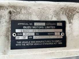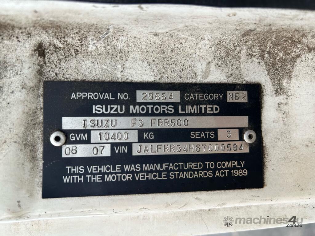 CP: 08/2007,Isuzu,FRR500,Refrigerated Pantech,Manual,Spring,4 Cyl,Diesel,6 Gears,888976 (Kms. Showing on Odometer),Hourmeter not visible,Colour: White,Unregistered,VIN: JALFRR34H67000584,Key No: 337,GVM: 10400,GCM: 16000,Sold with No Plates,Key No: 337