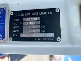 CP: 07/2007,Isuzu,FSR 700,Crane Truck,Manual,Spring,4 Cyl,Diesel,166032 (Kms. Showing on Odometer),4561 (Hrs. Showing on Hour meter),Colour: White,Rego. No: 840LFF QLD,VIN: JALFSR34P67000250,Key No: 32,GVM: 11990,Sold with No Plates,Key No: 32