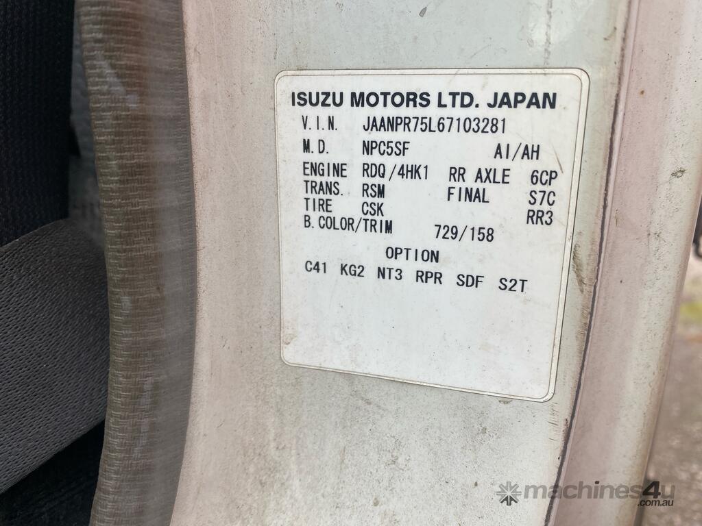 CP: 10/2007,Isuzu,NPR200,Table Top,Manual,Sprin,Odometer not visible,Hourmeter not visible,Colour: White,Rego. No: BQ49QK NSW,VIN: JAANPR75L67103281,GVM: 4490,GCM: 7990,Sold with No Plates,WOVR Status: Statutory Write-Off,Incident Type: Impact