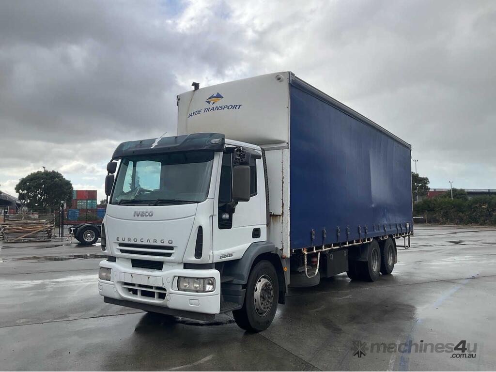 CP: 01/2007,Iveco,Eurocargo 230E28,Curtain Sider,Manual,Air Bag Suspension,Engine #: 273276,6 Cyl,Diesel,863384 (Kms. Showing on Odometer),Hourmeter not visible,Colour: White,Rego. No: NP(YGG787), Unregistered VIC,VIN: 6F2E2GM020D480777,Key No: 1,Length: 10.5 m,GVM: 23000,GCM: 32500,Sold with No Plates,Key No: 1