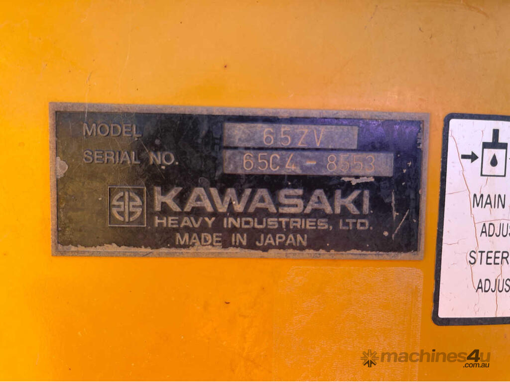CP: CIRCA 2007,Kawasaki,65ZV,Wheeled Loader,6 Cyl,Diesel Turbo,Odometer not visible,9658 (Hrs. Showing on Hour meter),Colour: Yellow,Rego. No: NP(C61771), Unregistered,Serial No: 65C4-8553,Sold with No Plates