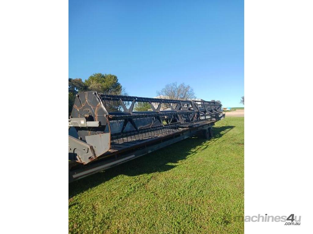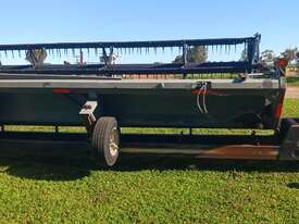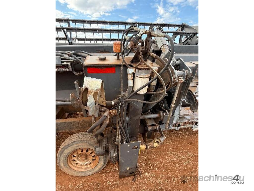 2007 Massey Ferguson 9895 header powered by a C13 CAT engine, paired with a Massey Ferguson 5100 Series 36ft front. The unit is fitted with a Redekop chopper that was replaced just one year ago. Presents in sound working condition and offers a reliable, well equipped harvesting package suited to larger operations.