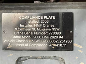CP: 09/2007,Mercedes Benz,Actros 3244,Crane Truck,Automated Manual Transmission,Spring,Engine #: 2745,6 Cyl,Diesel Turbo,320515 (Kms. Showing on Odometer),Hourmeter not visible,Colour: White,Rego. No: XO12LV NSW,Rego expiry: 19/07/2026,VIN: WDB9303062L251766,Key No: 140E,Length: 11.4 m,GVM: 35000,GCM: 70000,Sold with No Plates,Key No: 140E