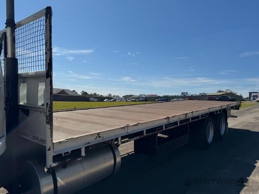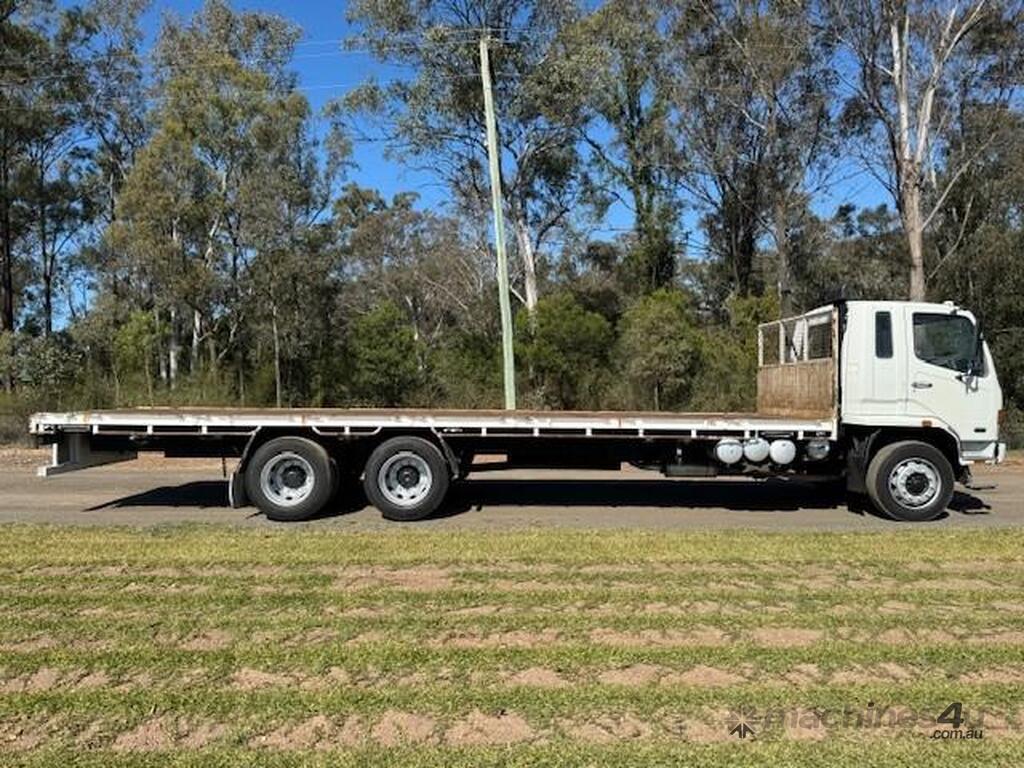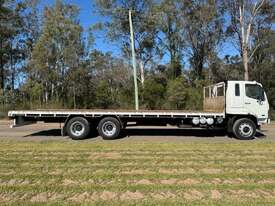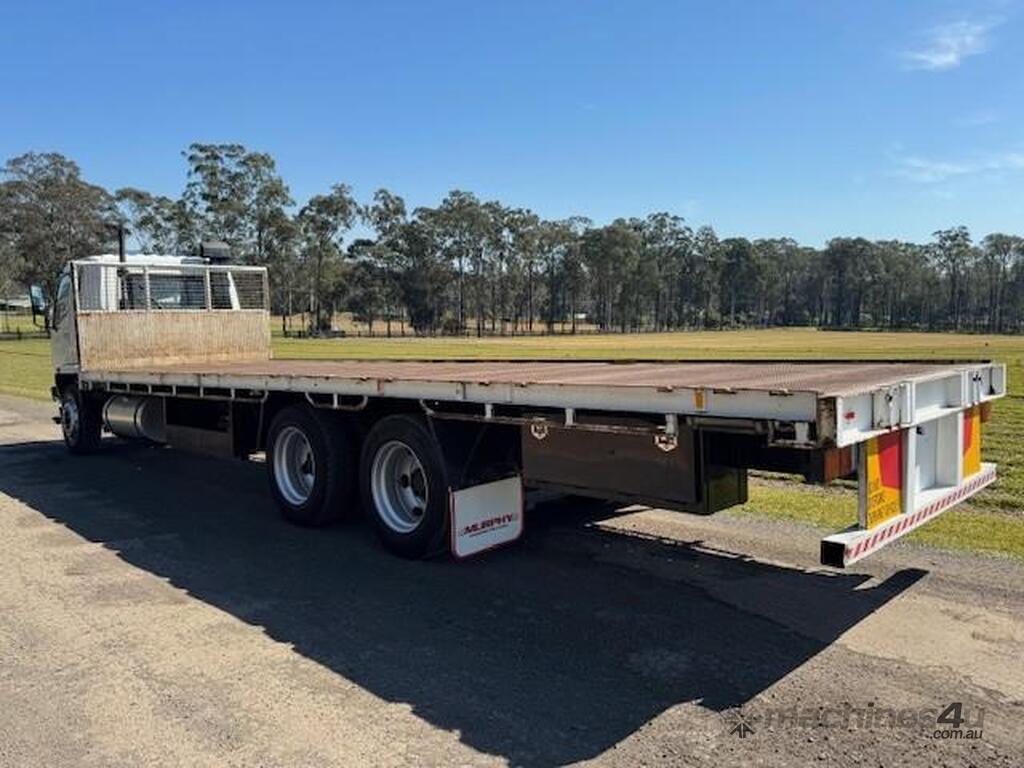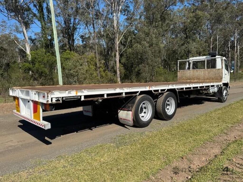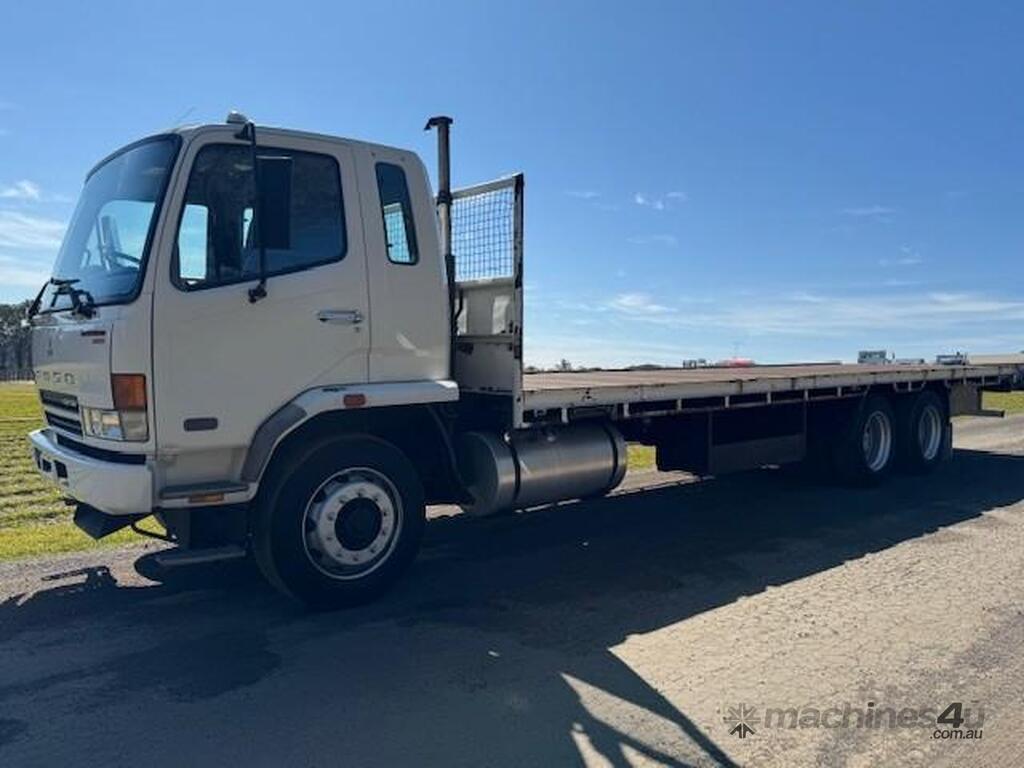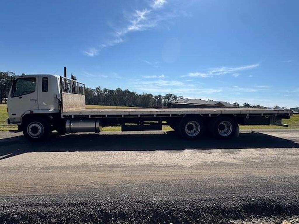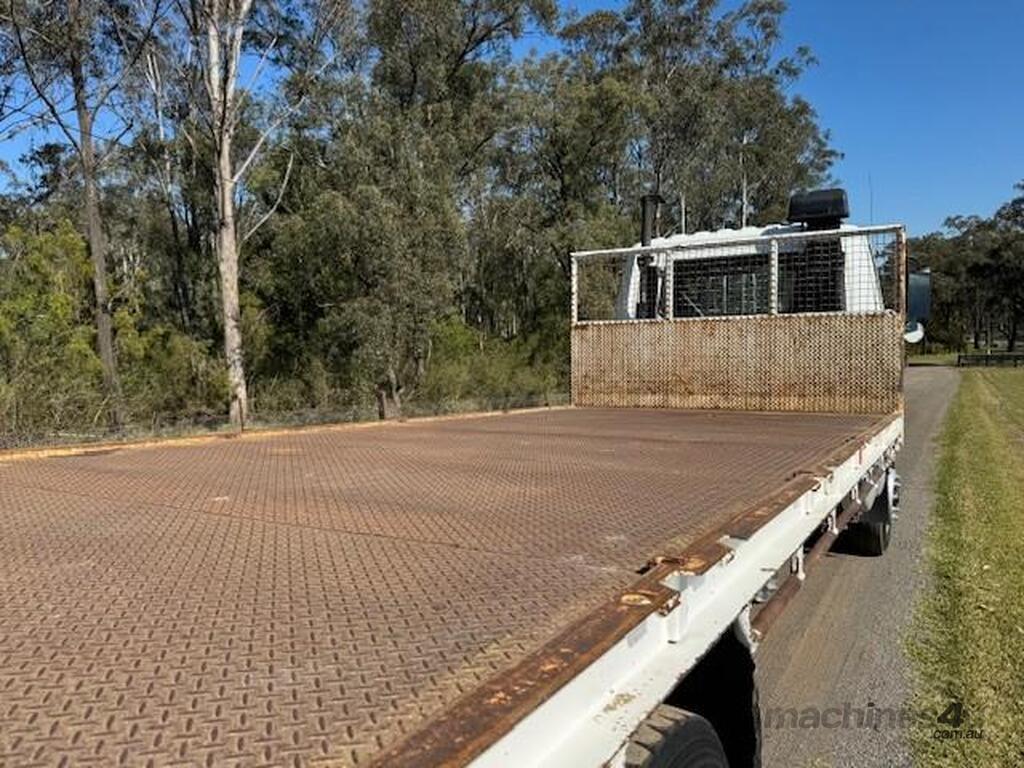 2007 Mitsubishi Fuso FN 600 with 14-pallet tray, Mitsubishi 6M60 270hp, only 329,901kms, Eaton 8 speed, 6570mm wheelbase, toolbox, airbag suspension, comes workshop checked, serviced, and complete with NSW RW for $59,000+GST
