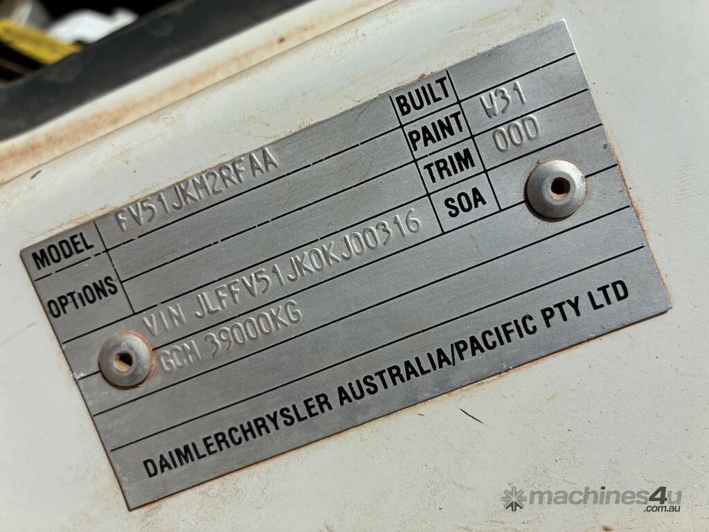CP: 08/2007,Mitsubishi,FV 500,Agitator,Manual,Leaf,6 Cyl,Diesel Turbo,10 Gears,259517 (Kms. Showing on Odometer),Hourmeter not visible,Rego. No: 1CRQ778 WA,VIN: JLFFV51JK0KJ00316,GVM: 25400,GCM: 39000,Sold with No Plates