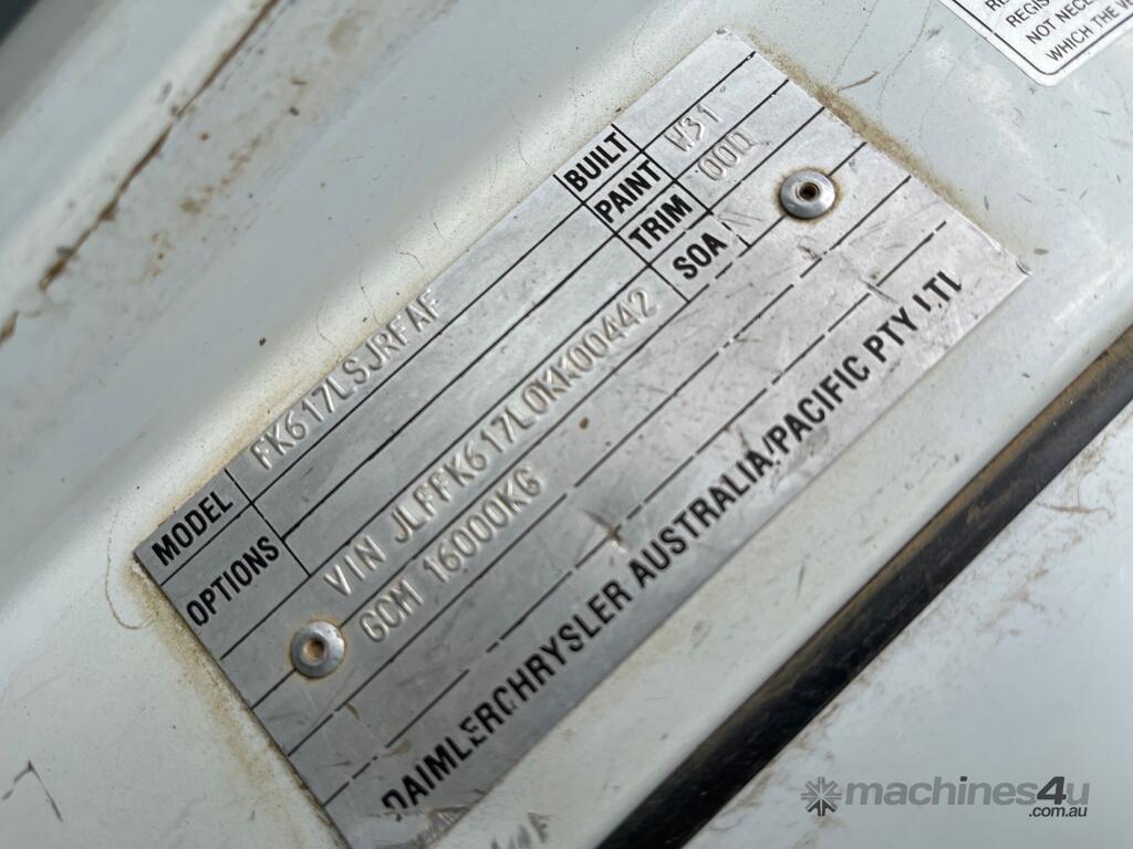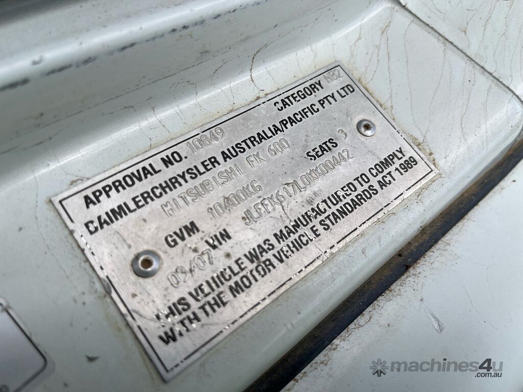CP: 03/2007,Mitsubishi,Fighter FK 6.0,Cattle Truck,Manual,Leaf Spring Suspension,6D16-3AT3,6 Cyl,Diesel Turbo,6 Gears,165398 (Kms. Showing on Odometer),Hourmeter not visible,Colour: White,Rego. No: XN61TG NSW,Rego expiry: 01/09/2026,VIN: JLFFK617L0KK00442,Length: 9.3 m,GVM: 10400,GCM: 16000,Sold with No Plates