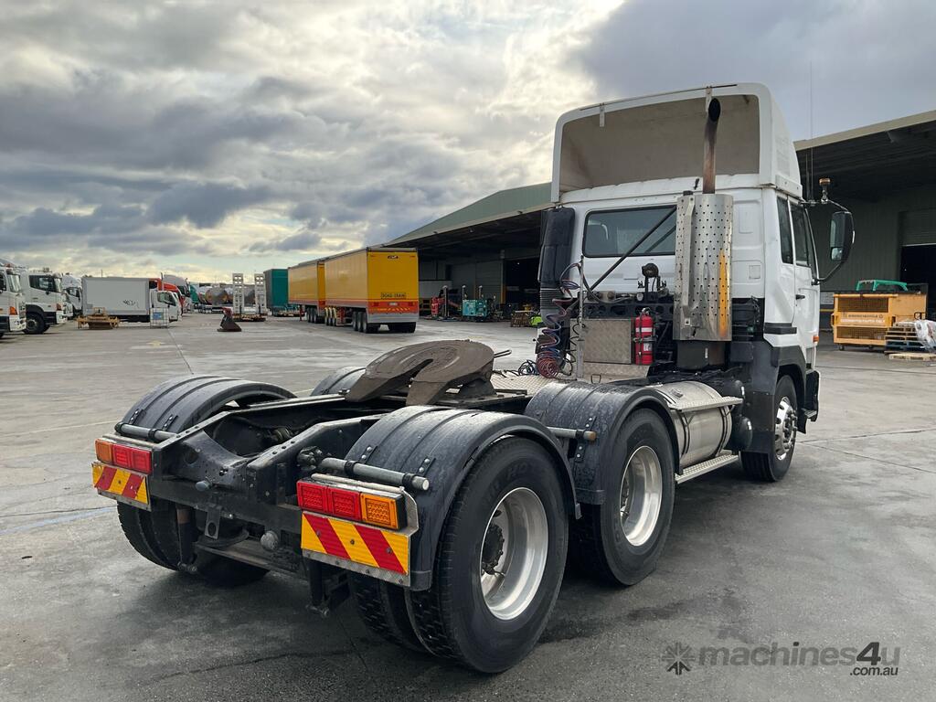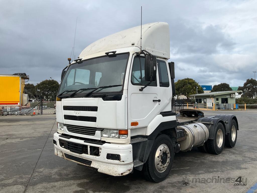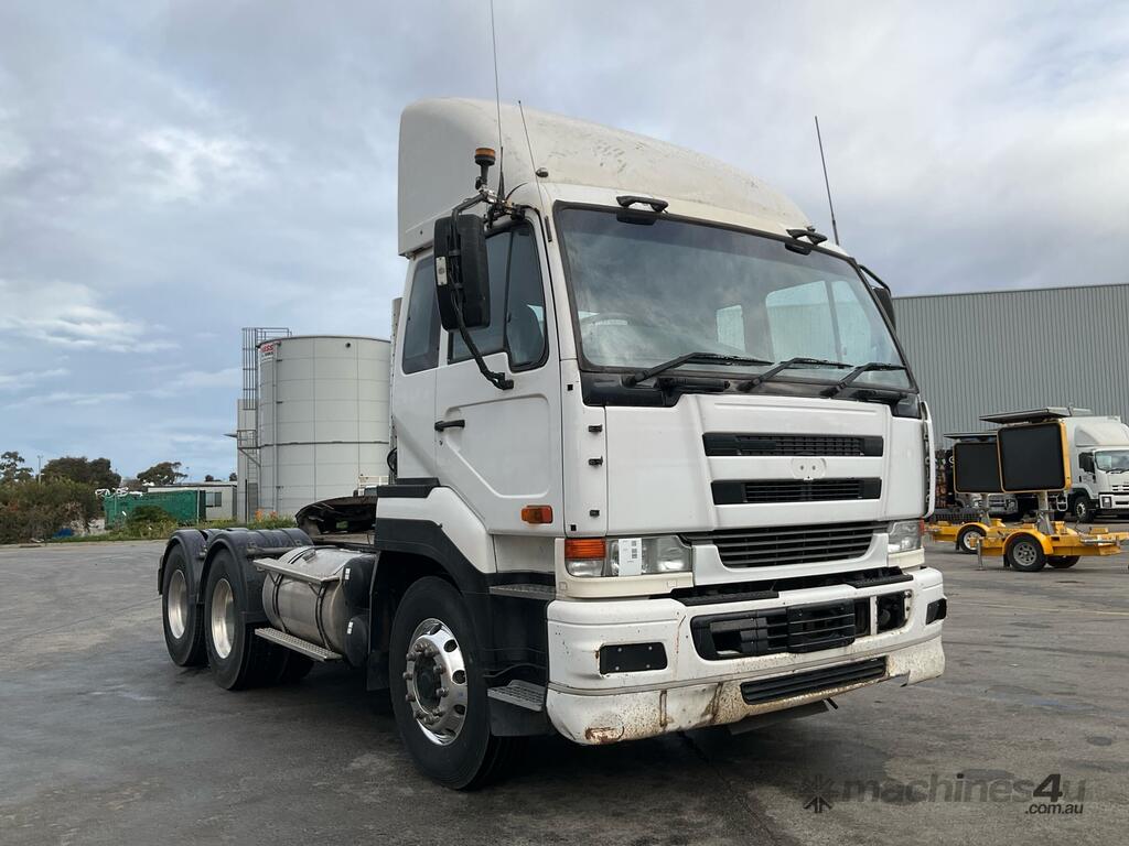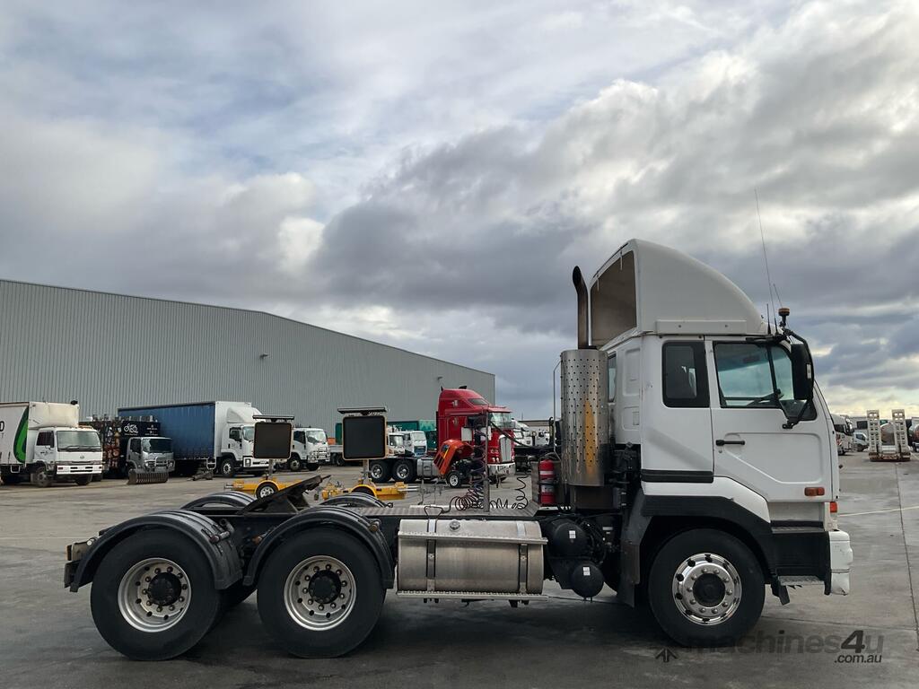 CP: 12/2007,Nissan UD,CWB483,Prime Mover,Manual,Air Bag Suspension,6 Cyl,Diesel,769402 (Kms. Showing on Odometer),Hourmeter not visible,Colour: White,Unregistered,VIN: JNBCWB48300H01449,Key No: 29,GVM: 26000,GCM: 70000,Sold with No Plates,Key No: 29