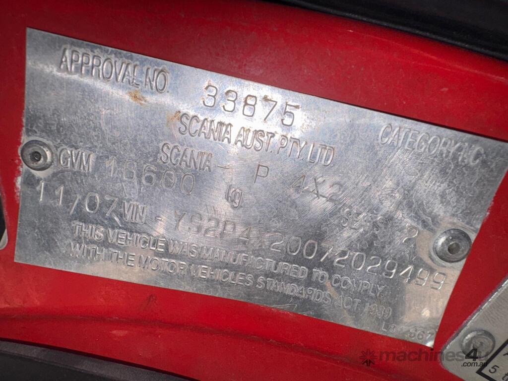 CP: 11/2007,Scania,P310,Fire Truck,Manual,airbags,6 Cyl,Diesel,Odometer not visible,Hourmeter not visible,Colour: Red,Rego. No: NP(1056QF), Unregistered,VIN: YS2P4X9,GVM: 18600,Sold with No Plates,WOVR Status: WOVR N/A,Incident Type: Not Applicable