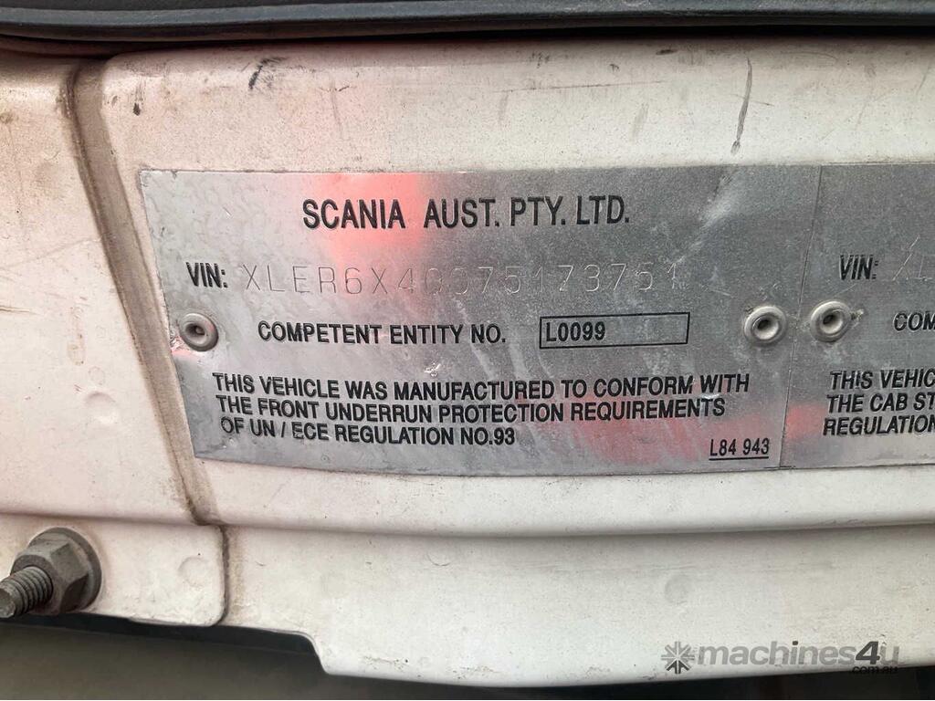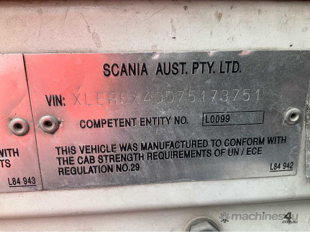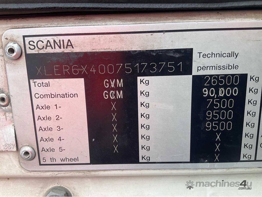 CP: 07/2007,Scania,R500,Prime Mover Sleeper Cab,Automated Manual Transmission,Airbag,8 Cyl,Diesel Turbo,718283 (Kms. Showing on Odometer),17395 (Hrs. Showing on Hour meter),Colour: White,Unregistered,VIN: XLER6X1,Key No: 170E,Length: 7.1 m,GVM: 26500,GCM: 90000,Sold with No Plates,Key No: 170E