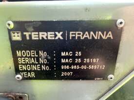 CP: CIRCA 2007,Built: 07/2007,Terex - Franna,MAC25,Pick & Carry Crane,Engine #: 9712,Diesel,34541 (Kms. Showing on Odometer),18288 (Hrs. Showing on Hour meter),Colour: Yellow,Rego. No: NP(737JXL), Unregistered QLD,Serial No: MAC2525197,Sold with No Plates