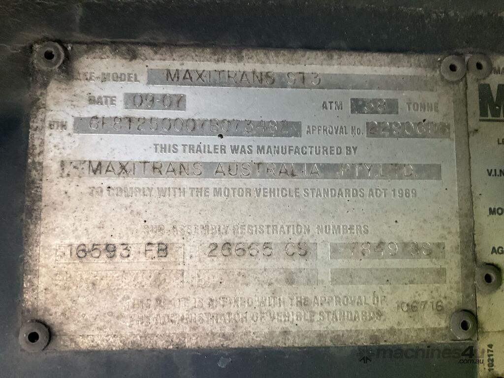 CP: 07/2007,Vawdrey,ST3,Tri Axle Drop Deck Curtainside Trailer,256790 (Kms. Showing on Hubometer),Colour: Blue,Unregistered,VIN: 6F8T250007B073482,Sold with No Plates
