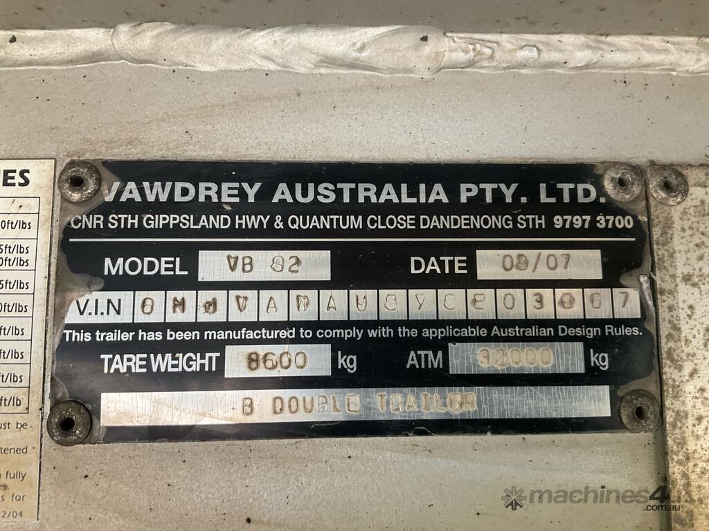 CP: 09/2007,Built: 09/2007,Vawdrey,Tandem Axle Pantech Trailer,71735 (Kms. Showing on Hubometer),Colour: Yellow,Unregistered,VIN: 6HJVAWAUSYSE03967,Sold with No Plates