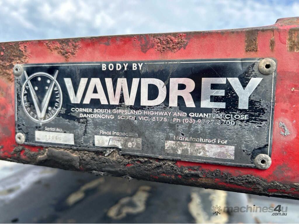CP: 05/2007,Vawdrey,Tri Axle Skel Trailer,Hubometer not visible,Colour: Red,Unregistered,VIN: 6HJVAWAUS7SE03635,Sold with No Plates