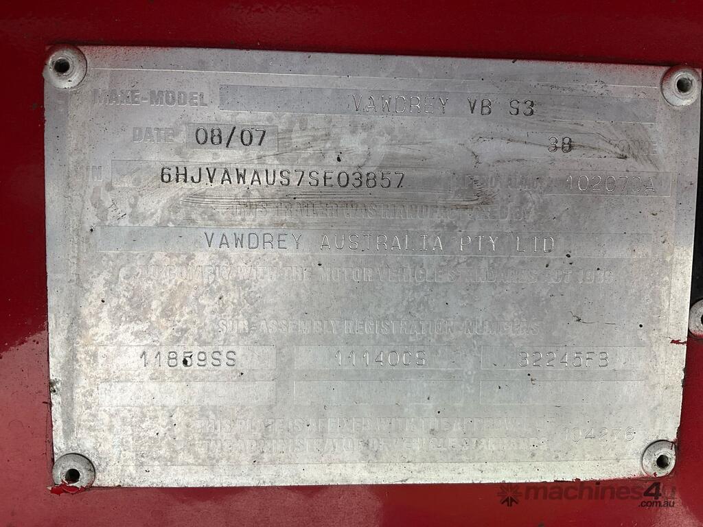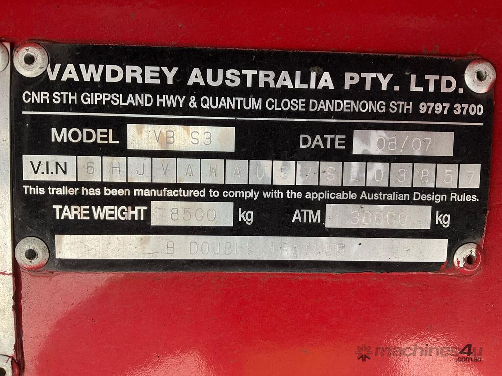 CP: 08/2007,Vawdrey,VB-S3,43ft,Tri Axle Flat Top Trailer,Hubometer not visible,Colour: White,Unregistered,VIN: 6HJVAWAUS7SE03857,Serial No: 6HJVAWAUS7SE03857,Sold with No Plates