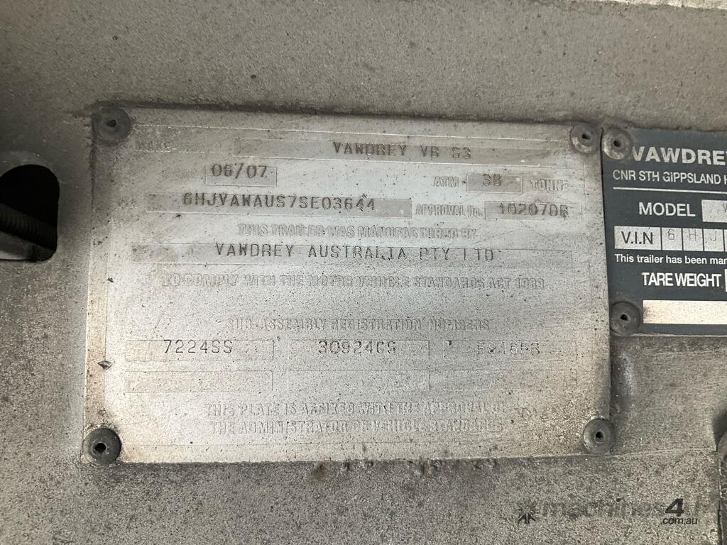 CP: 06/2007,Vawdrey,VBS3,Tri Axle Drop Deck Curtainsider B Trailer,759223 (Kms. Showing on Hubometer),Colour: White,Rego. No: NP(YV29DU), Unregistered,VIN: 6HJVAWAUS7SE03644,Sold with No Plates