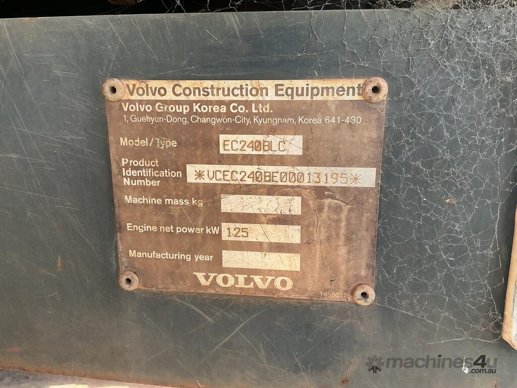 No C/P,Built: 01/2007,Volvo,EC240BLC,Excavator (Steel Tracked),6 Cyl,Diesel Turbo,Odometer not visible,16797 (Hrs. Showing on Hour meter),Colour: Yellow,Rego. No: NP(1COG813), Unregistered WA,Serial No: VCEC240BE00013195,ROPS No: undefined,Sold with No Plates,Key No: 159