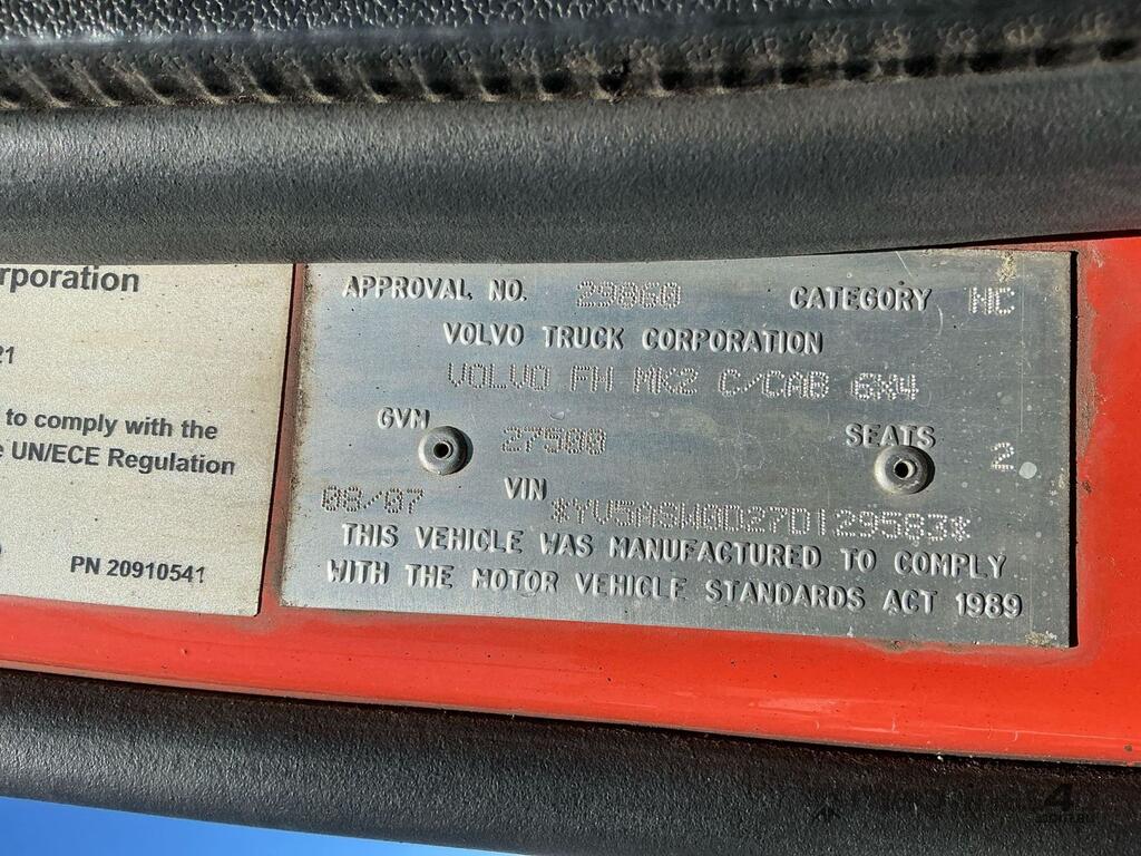 CP: 08/2007,Volvo,FH MK2,6x4 Prime Mover,Automatic,Airbag ,6 Cyl,Diesel,Turbo,Odometer not visible,Hourmeter not visible,Unregistered NSW,VIN: YV5ASW0D27D129583,GVM: 27500,Sold with No Plates,WOVR Status: WOVR N/A,Incident Type: Not Applicable