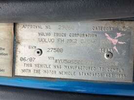 CP: 06/2007,Volvo,FH MK2,Tipper,Automatic,Airbag ,6 Cyl,Diesel,Odometer not visible,Hourmeter not visible,Colour: Blue,Rego. No: NP(XO16DA), Unregistered NSW,VIN: YV5AS50D97D129364,GVM: 27500,Sold with No Plates,WOVR Status: Repairable Write-Off,Incident Type: Impact