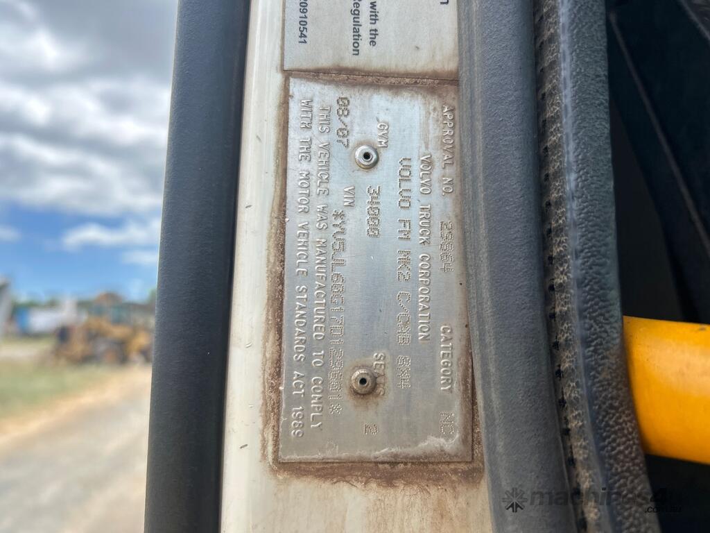 CP: 08/2007,Volvo,FM340,Cab Chassis,Automatic,Spring Suspension ,Volvo,6 Cyl,Diesel,800068 (Kms. Showing on Odometer),Hourmeter not visible,Colour: White,Rego. No: NP(115WSL), Unregistered QLD,VIN: YV5JL60G17D129601,Key No: T1,GVM: 34000,GCM: 50000,Sold with No Plates,WOVR Status: WOVR N/A,Key No: T1