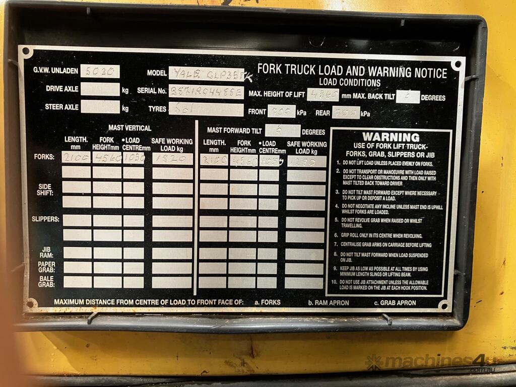 YALE GLP35TK LPG FORKLIFT – LOW 2,339 HOURS – 3.5T CAPACITY – 4.8M MAST – SIDESHIFT