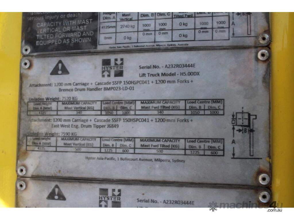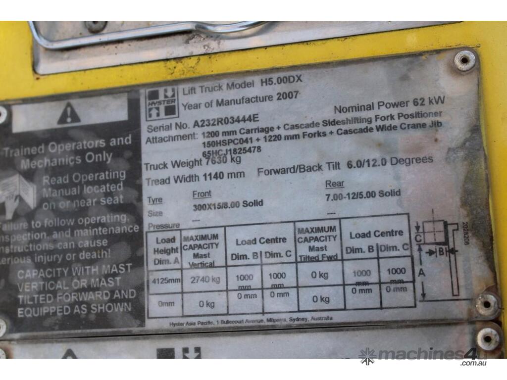 Used yale Counterbalance Forklifts for sale - 2007 Yale H5.00DX :      $35,000 AUD($38,500 Inc. GST)