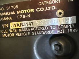 CP: 09/2007,Yamaha,FZ6N,Motorcycle,88756 (Kms. Showing on Odometer),Colour: Silver,Rego. No: NP(ONH02), Unregistered NSW,VIN: JYARJ14758A000126,Sold with No Plates,WOVR Status: WOVR N/A,Incident Type: Impact