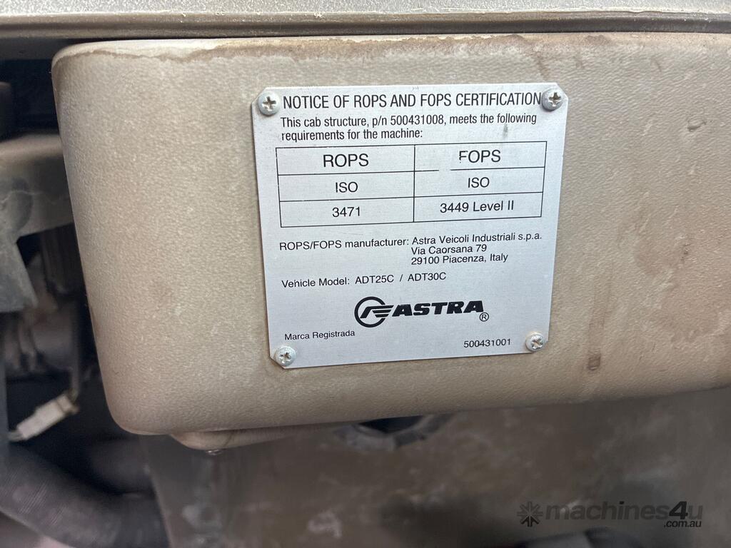 CP: CIRCA 2008,Astra,ADT30C,6x6 Articulated Dump Truck,Automatic,hydraulic,Iveco,7800 CC,6 Cyl,Diesel,Direct Injection,Odometer not visible,3262 (Hrs. Showing on Hour meter),Colour: Yellow,Unregistered,VIN: ZCNAD30TP8P456302,GVM: 50730,Sold with No Plates