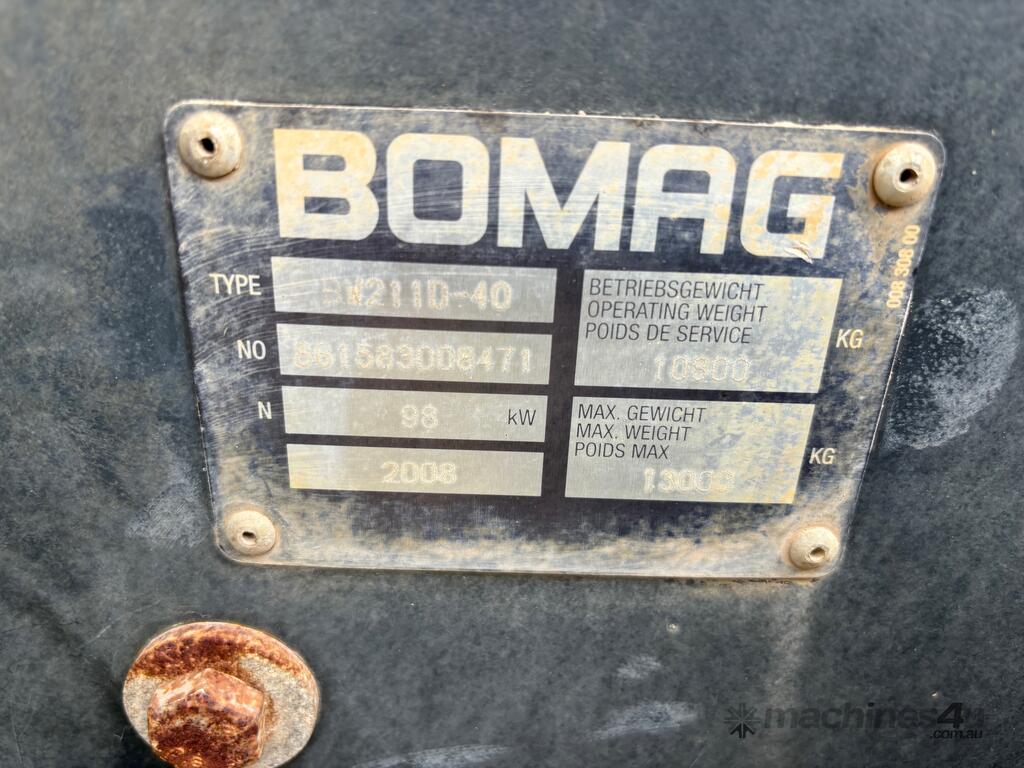 2008 BOMAG BW2110D-40 SMOOTH DRUM ROLLER :      $90,000 AUD($99,000 Inc. GST)