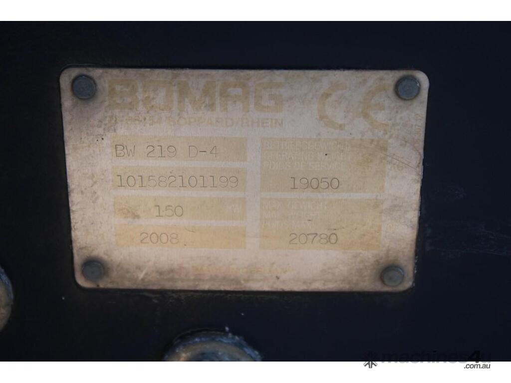 Used bomag Single Drum Smooth Rollers for sale - 2008 BOMAG BW219D-4 :      $79,000 AUD($86,900 Inc. GST)