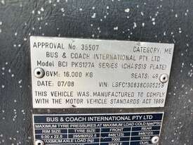 2008 BUS AND COACH INTERNATIONAL PK6127AT BUS, VIN: LSFC130838C005259, E/N: 46857369, 802,670 KM SHOWING, REGISTRATION EXPIRES 30/09/2026, CURRENT COI. LOCATION: MACKAY, QLD 4740. INSPECTIONS & COLLECTIONS: BY APPOINTMENT ONLY. ENQUIRIES: JOHN MCDOUGALL ON OR JOHNEMERALDAUCTIONCENTRE