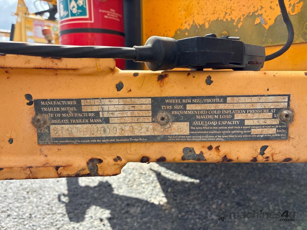 CP: 09/2008,Bliss Fox,Single Axle Lighting Tower Trailer,Hubometer not visible,Colour: Yellow,Unregistered,VIN: 6T9T26R09802XF008,Sold with No Plates