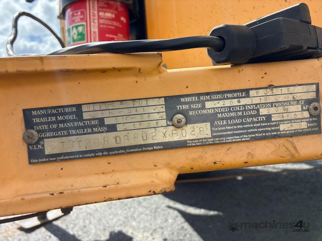 CP: 11/2008,Bliss Fox,Single Axle Lighting Tower Trailer,Hubometer not visible,Colour: Yellow,Unregistered,VIN: 6T9T26R09802XF028,Sold with No Plates