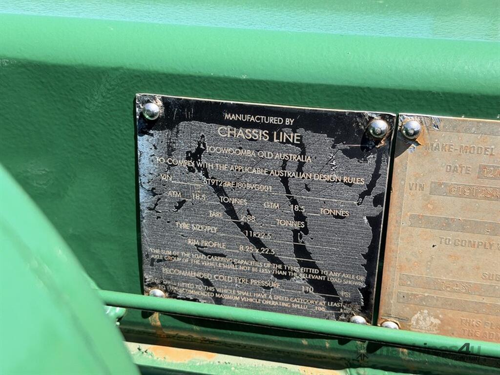 2008 CHASSIS LINE TANDEM AXLE DOLLY, VIN: 6T9T23AEJ80BVG001, NO REGISTRATION, NO COI. LOCATION: HALFERTY STREET, EMERALD, QLD 4720. INSPECTIONS & COLLECTIONS: MONDAY TO FRIDAY, 8AM TO 4PM. ENQUIRIES: CAMERON BENSLEY ON OR CAMERONEMERALDAUCTIONCENTRE