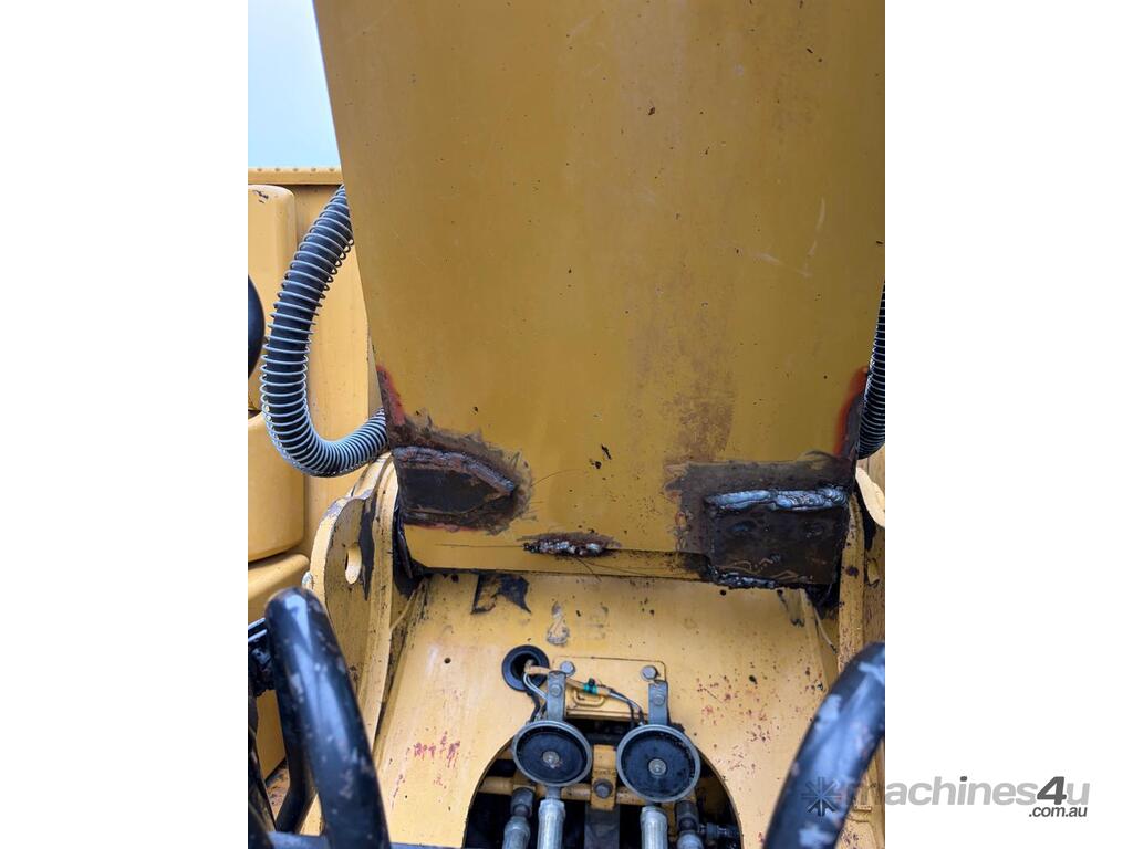 Machine is battered and bruised but starts and runs. Machine works in backhoe mode at the moment. Repairs needed on boom.