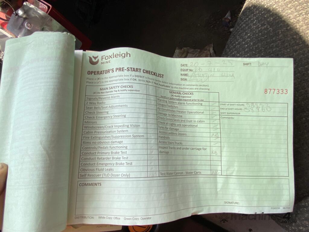 CP: CIRCA 2008,Caterpillar,785C,Off Highway Rear Dump Truck,Diesel,58960 (Kms. Showing on Odometer),Hourmeter not visible,Colour: Yellow,Unregistered,Serial No: CAT9785CCAPX01495,Sold with No Plates
