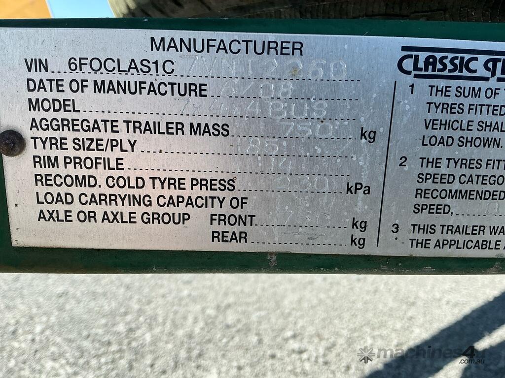 CP: 06/2008,Classic Trailers,7x4x4,Single Axle Enclosed Box Trailer,Hubometer not visible,Colour: Green,Rego. No: NP(U81168), Unregistered NSW,VIN: 6F0CLAS1C7VNT2260,Sold with No Plates