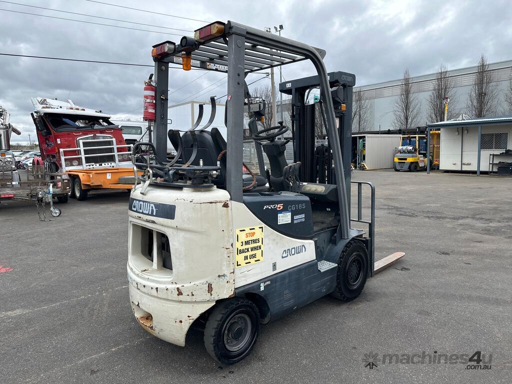 CP: CIRCA 2008,Crown,CG18S-5,3 Stage Forklift Truck,4 Cyl,Petrol & LPG (Dual),Odometer not visible,5022 (Hrs. Showing on Hour meter),Colour: Grey,Unregistered,Serial No: NQ00172R,ROPS No: undefined,FOPS No: undefined,Sold with No Plates,Key No: 23