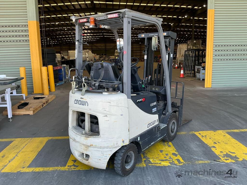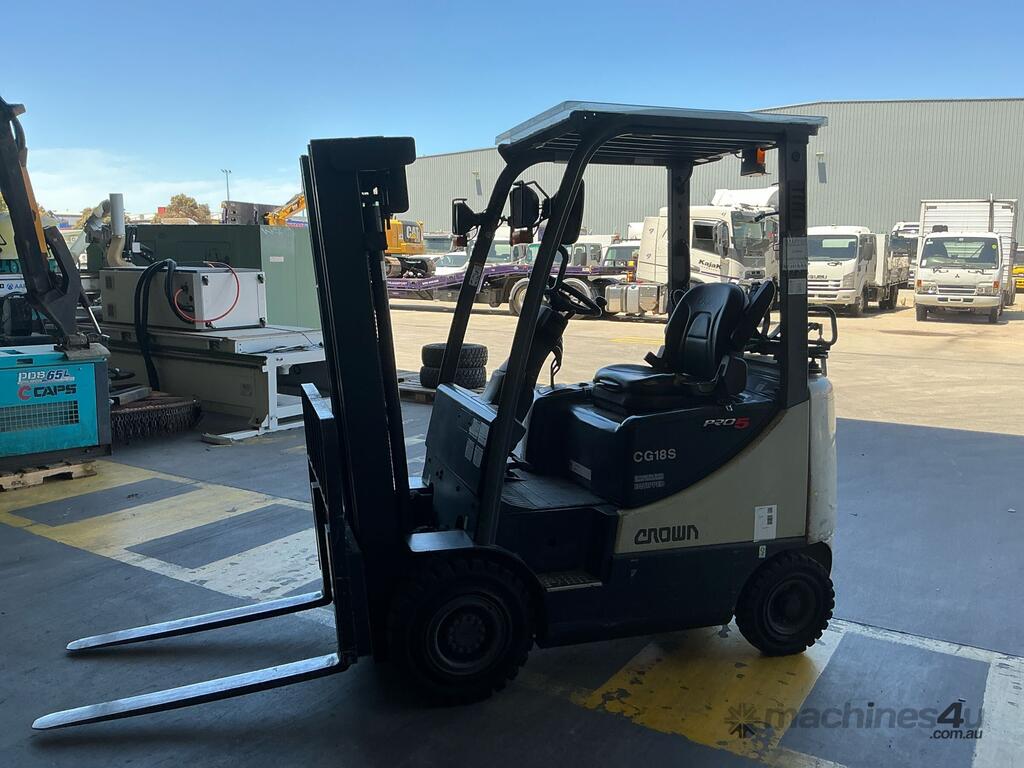 CP: CIRCA 2008,Crown,CG18S,Counter Balance Forklift,LPG only,Odometer not visible,4668 (Hrs. Showing on Hour meter),Colour: Beige,Unregistered,Serial No: NK-00463R,Sold with No Plates