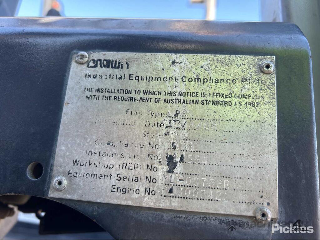 CP: 04/2008,Built: 04/2008,Crown,CG25P-5,3 Stage Forklift Truck,Engine #: P10002421,4 Cyl,LPG only,Odometer not visible,6715 (Hrs. Showing on Hour meter),Colour: Beige,Unregistered,Serial No: ML-00786R,ROPS No: null,Sold with No Plates,Key No: 02