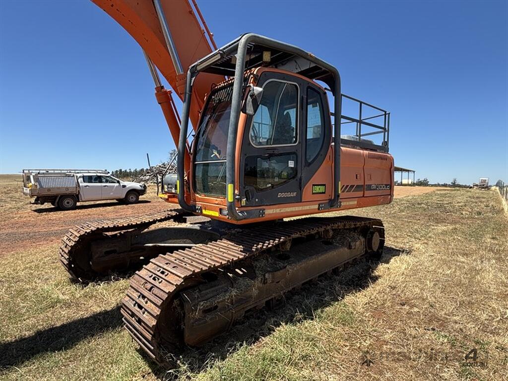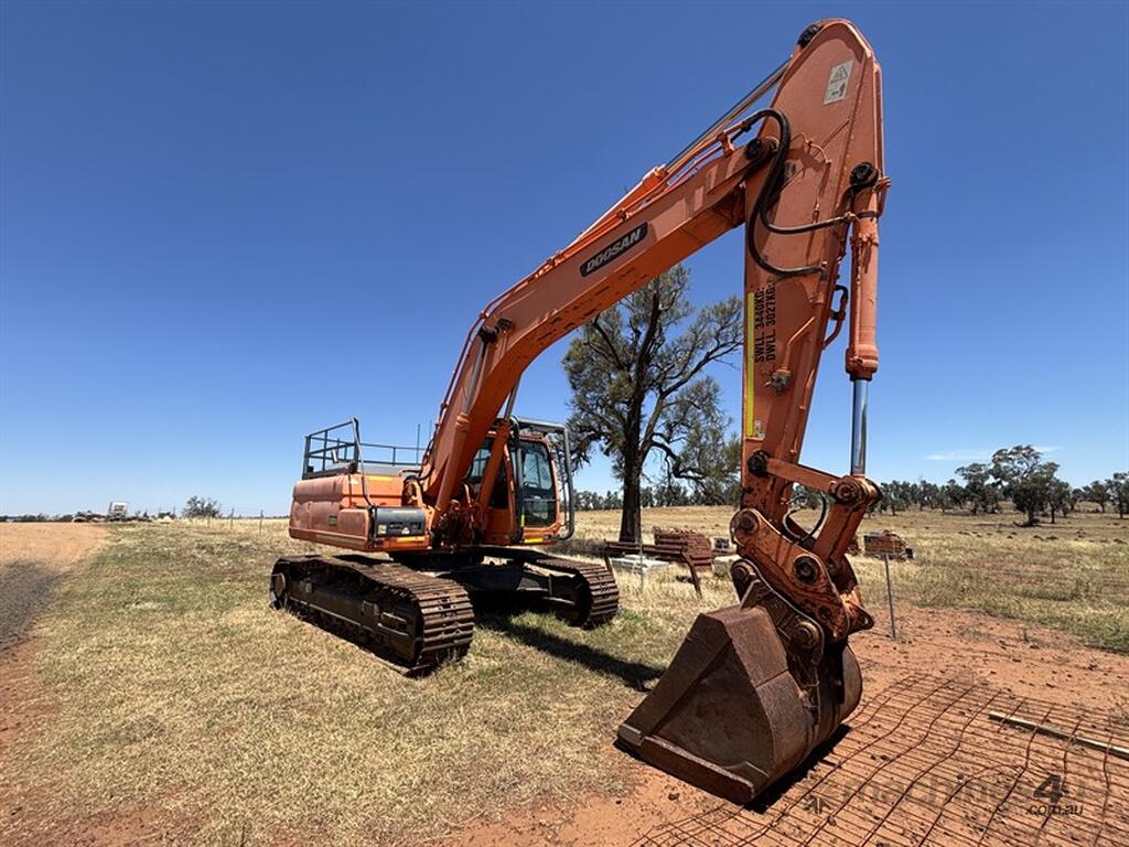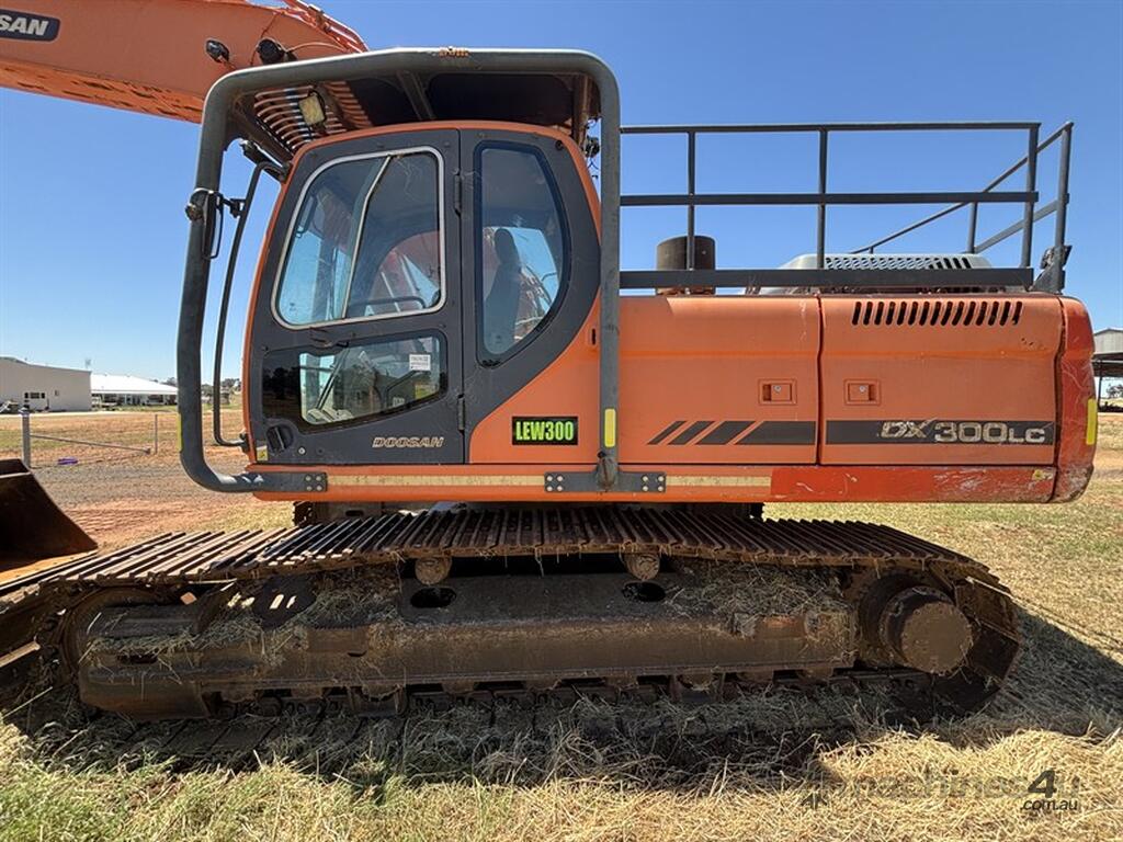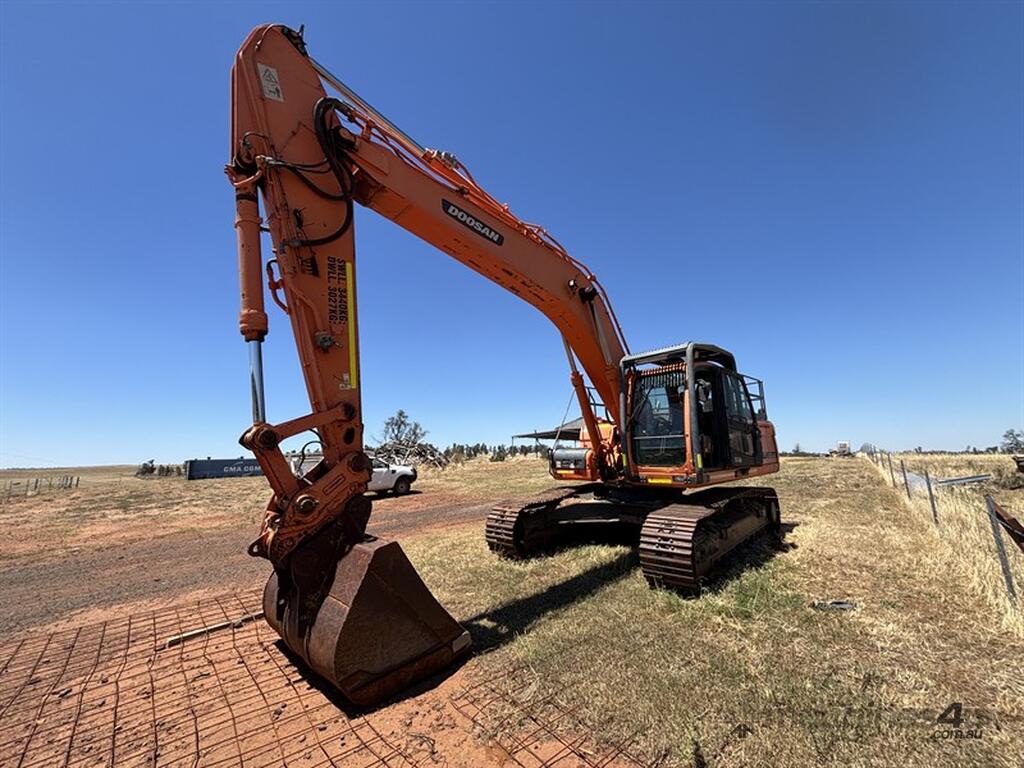 2008 DOOSAN DX300LC EXCAVATOR, S/N: DHKCECAAC80007516, showing 10 658hrs, includes 1500mm, 1050mm (not pictured) and 600mm toothed GP digging buckets, 1800mm mud bucket, ripper attachment, 500mm wide compacting roller and hydraulic grab, fitted with quick hitch, auxillary hydraulics, unit presents and runs well, no longer required, located Dubbo